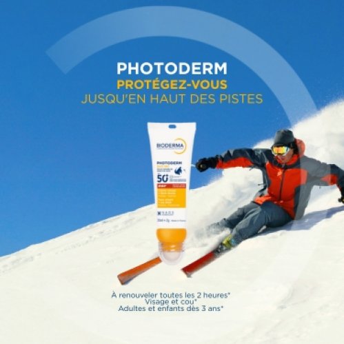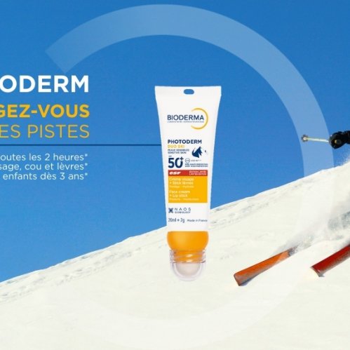 Protection solaire 2-en-1 visage et lèvres, pour se protéger du soleil jusqu’en haut des pistes !
